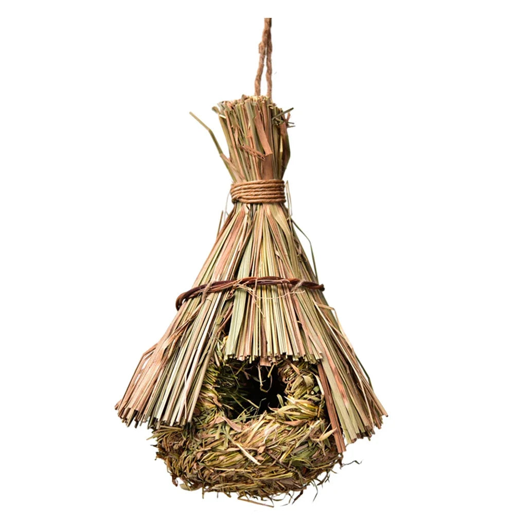 The bird house comes in various sizes and styles, including options made from bamboo leaf and reed grass, allowing you to choose the perfect fit for your outdoor birdhouse decoration.