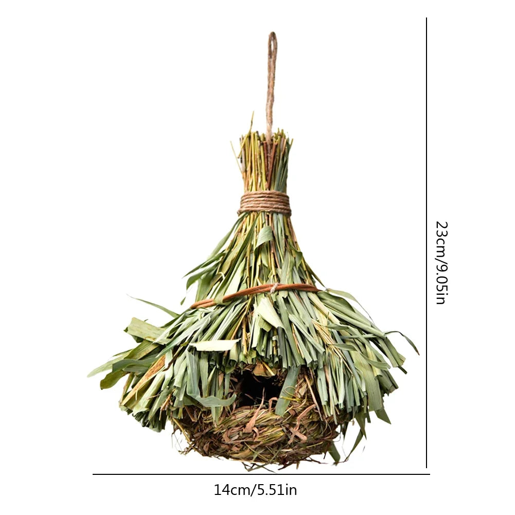 This bird house is handwoven from 100% natural grass fibers, such as bamboo leaf and reed grass, without any chemical additives, making it eco-friendly and biodegradable.