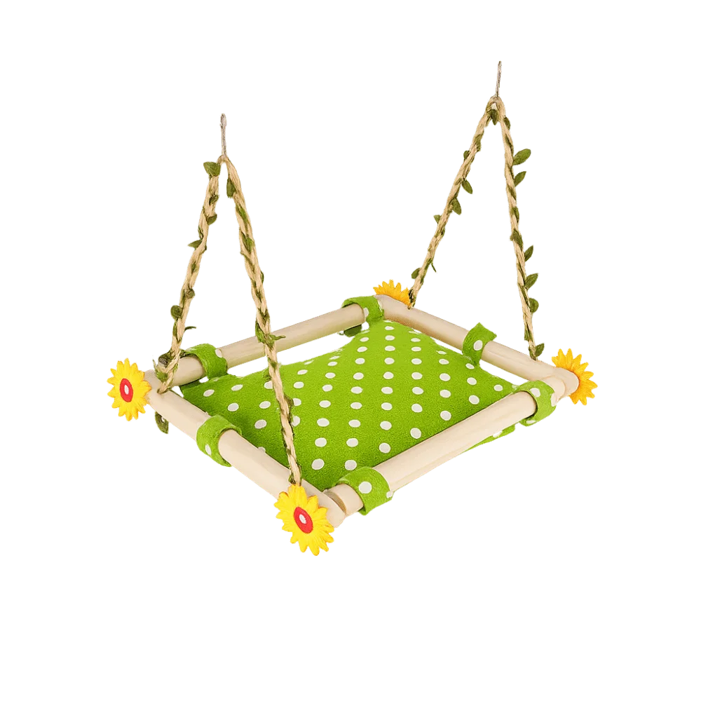 The hammock is made from sturdy canvas, pine wood, and reliable hardware, providing a chew-proof and long-lasting resting spot for your bird.