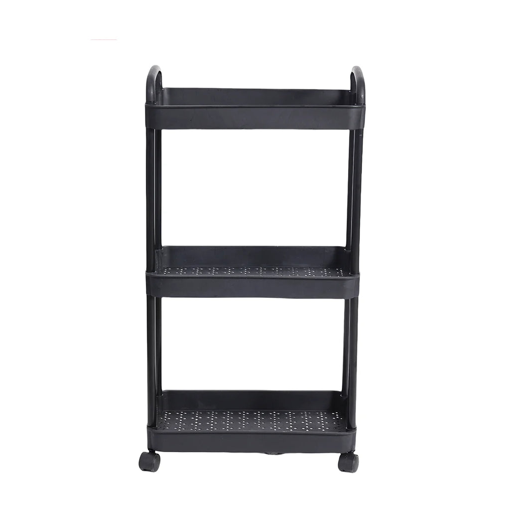 It includes three or four tiers of widened plastic baskets, offering plenty of room for items like kitchen supplies, office essentials, or art materials.