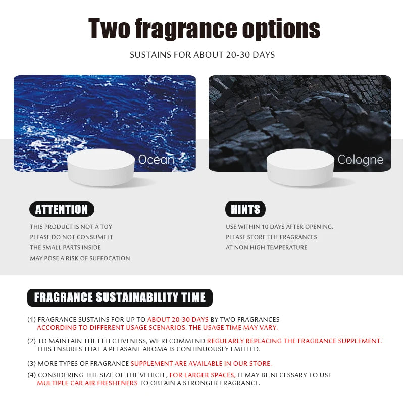 The gentle spinning motion created by the airflow enhances the diffusion of the fragrance, ensuring a more consistent and immersive aroma experience inside your vehicle.
