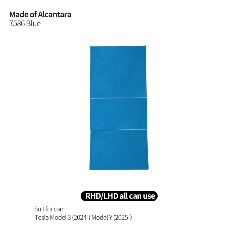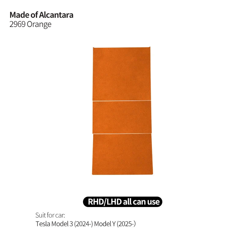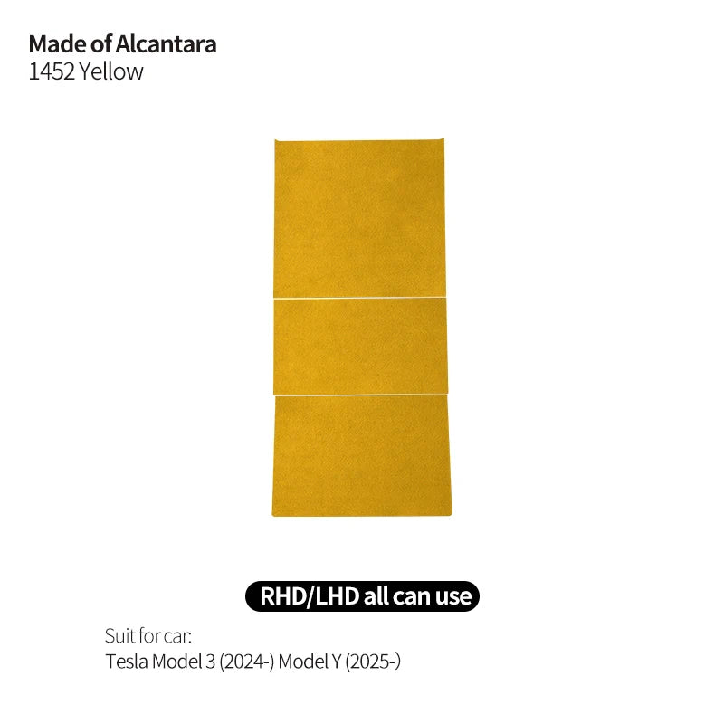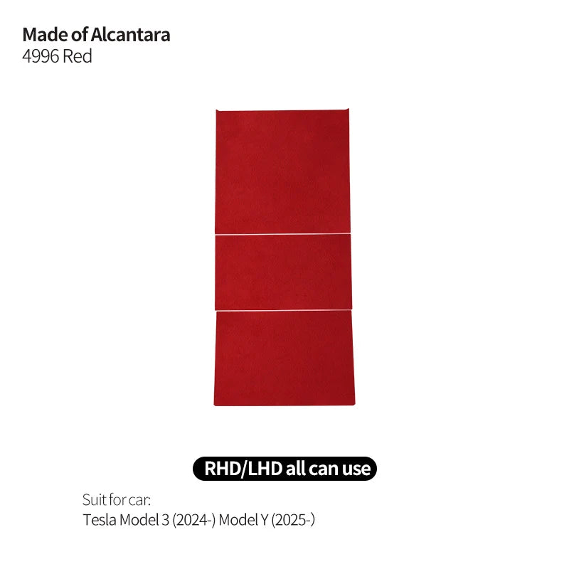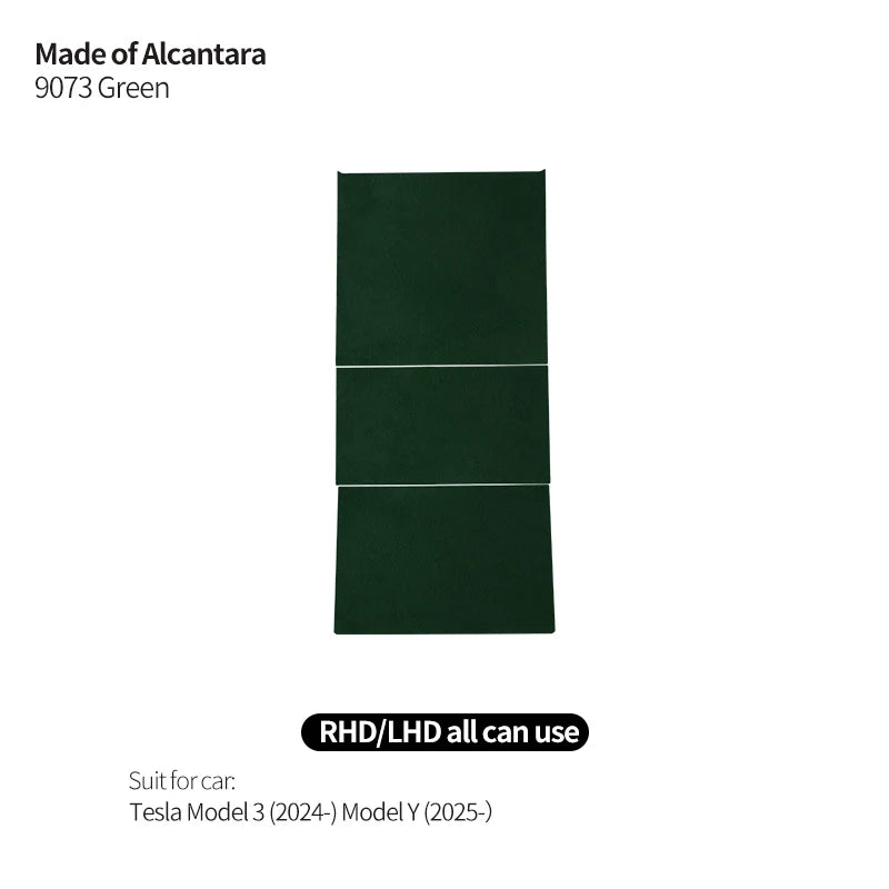 Alcantara center console trim for Tesla Model 3 and Model Y with matte finish and noise damping.