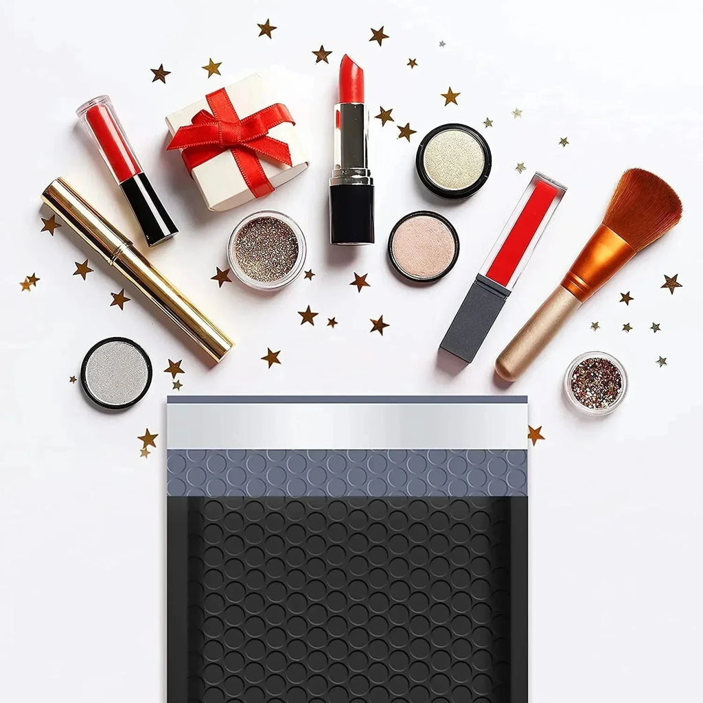 100 pcs black self-seal bubble mailers with waterproof, tear-resistant padded protection.