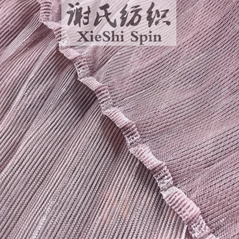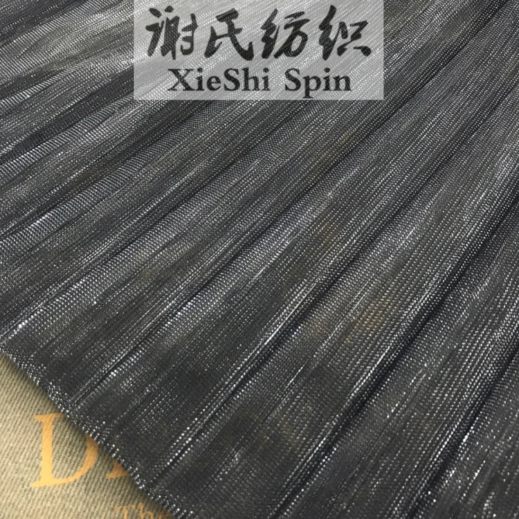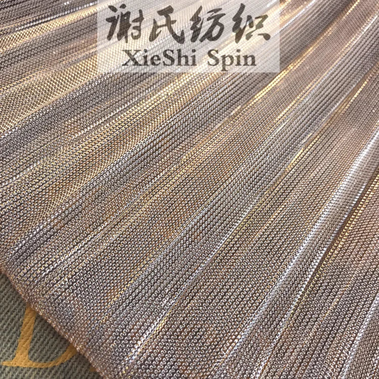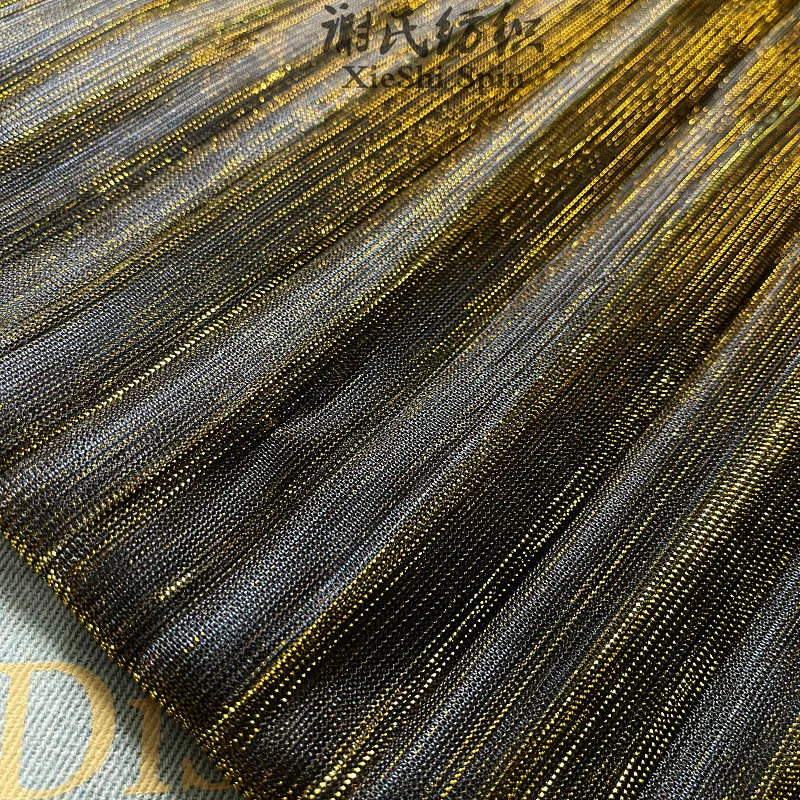 This fabric is made from lightweight polyester weighing 70 grams per meter, featuring a soft texture with a shiny, glittery finish.