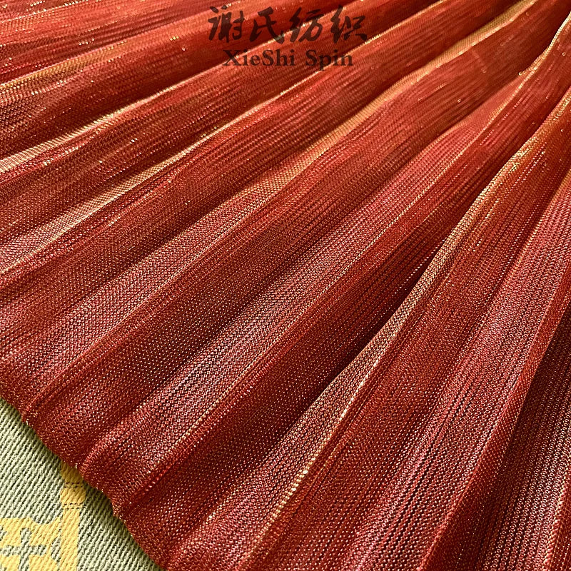The gentle pleats create a dynamic visual effect that enhances the shimmer and depth of the fabric, making it especially striking under different lighting conditions.