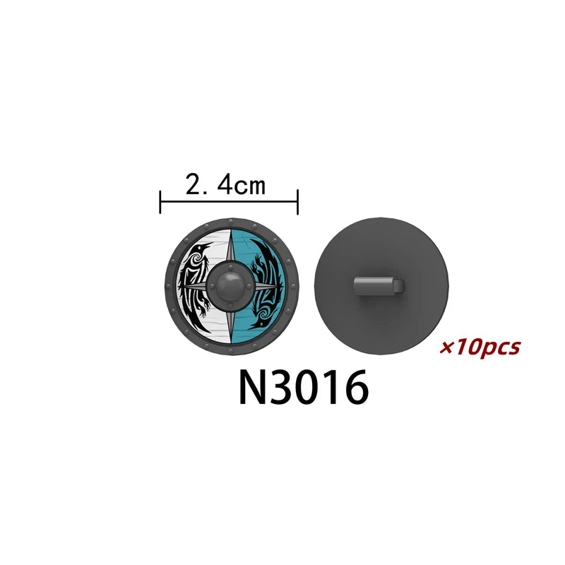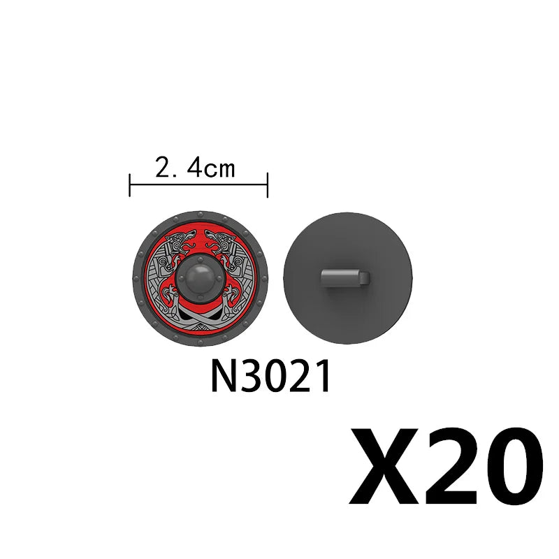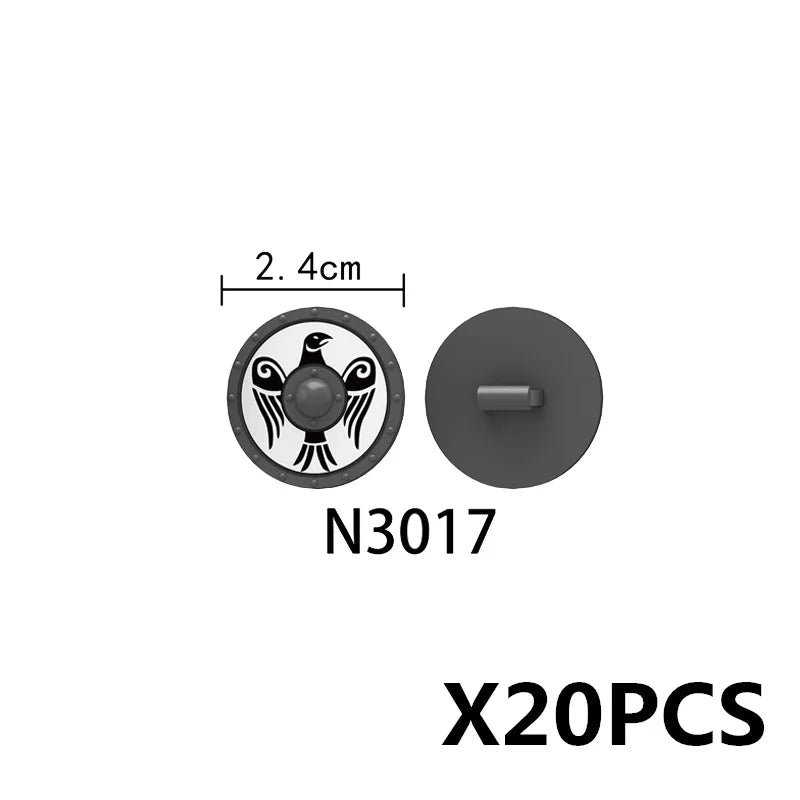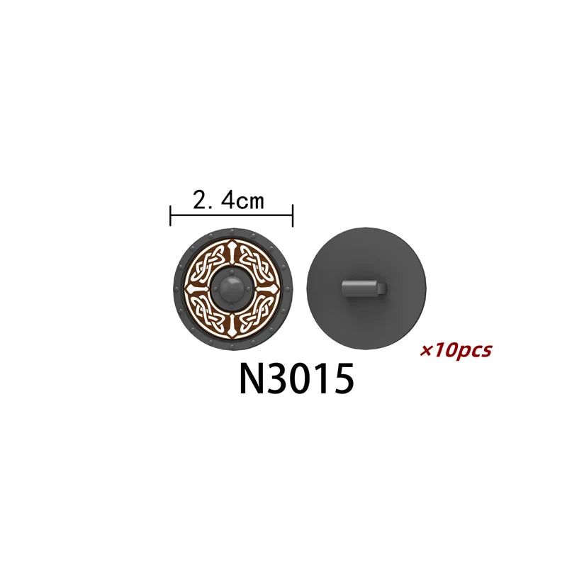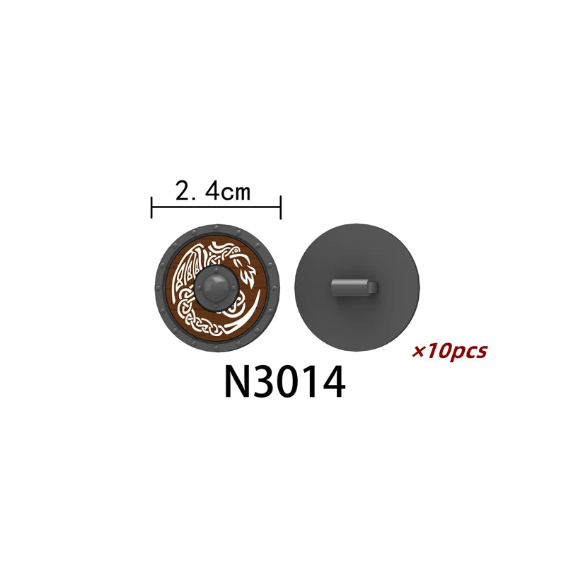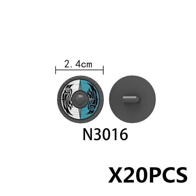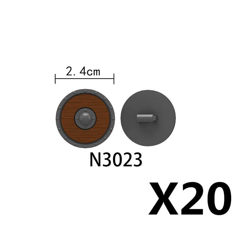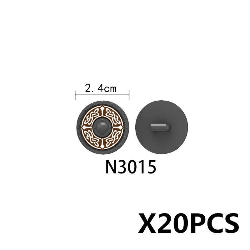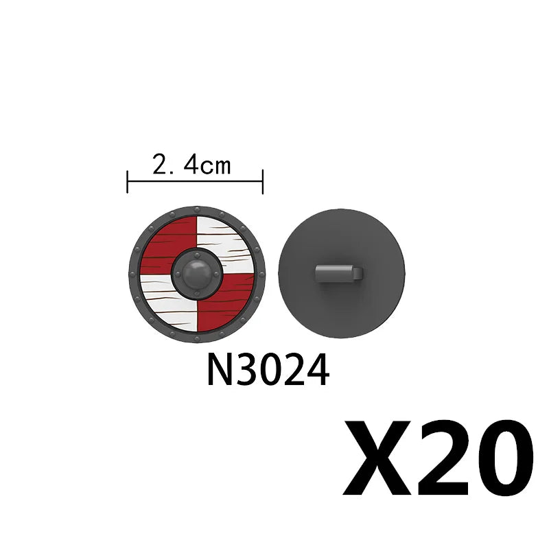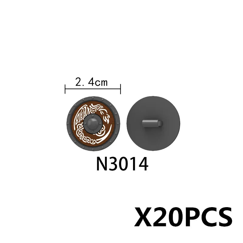 Medieval castle knight figure with Viking round shield, compatible DIY building blocks.
