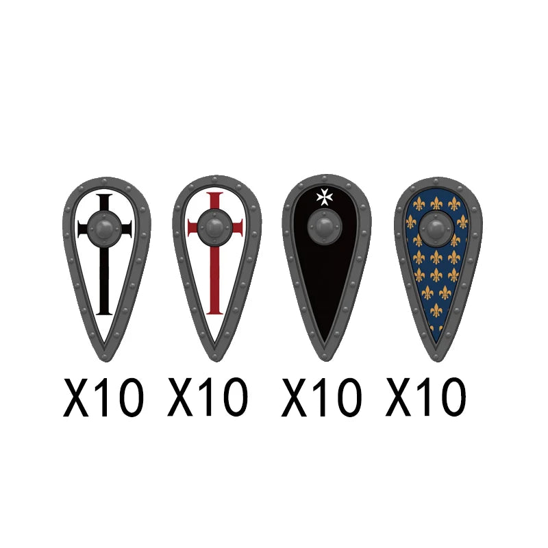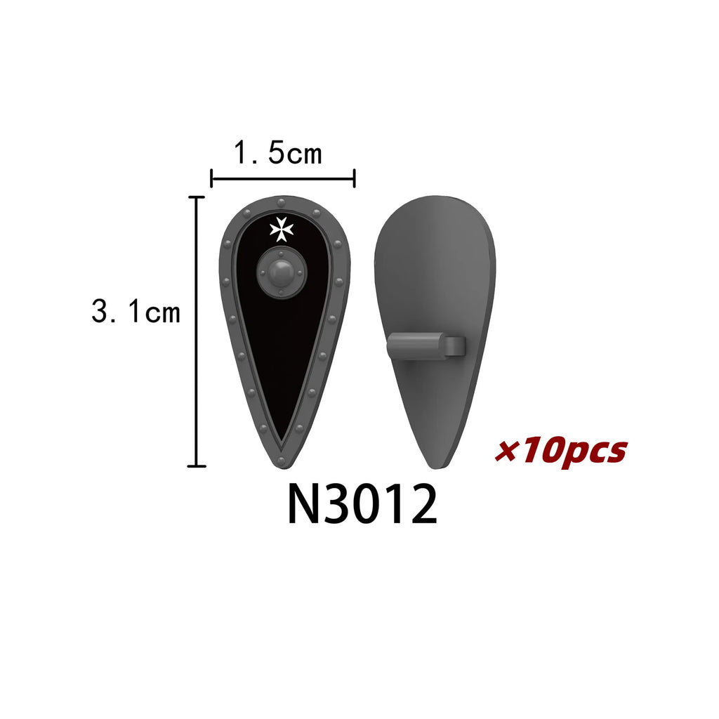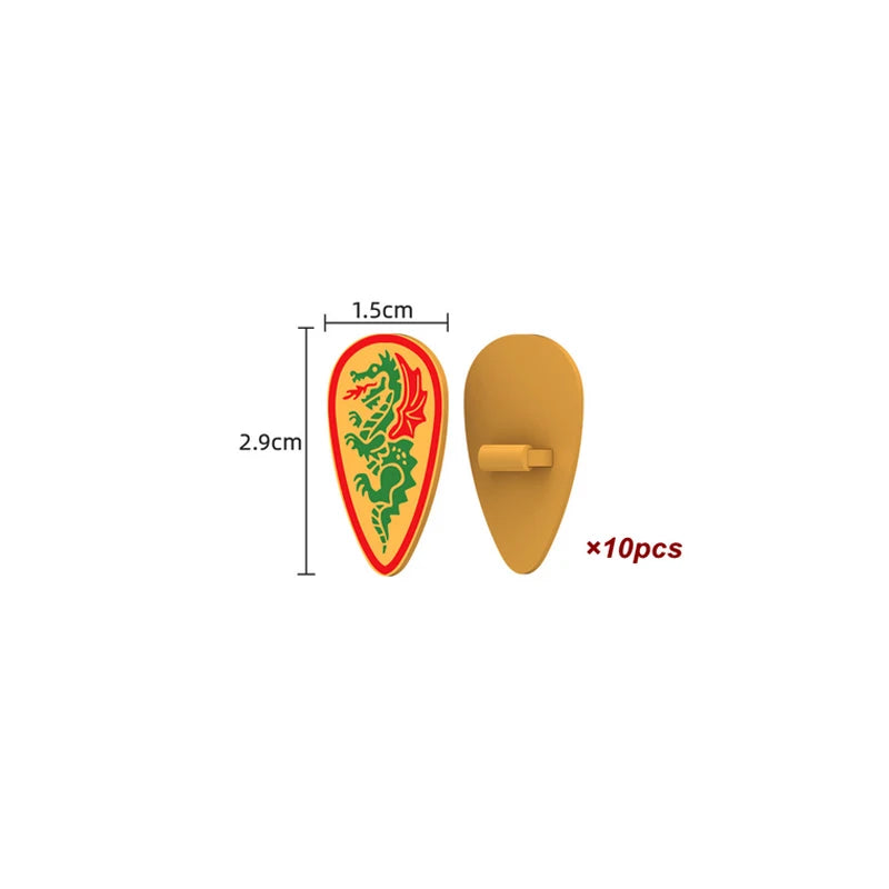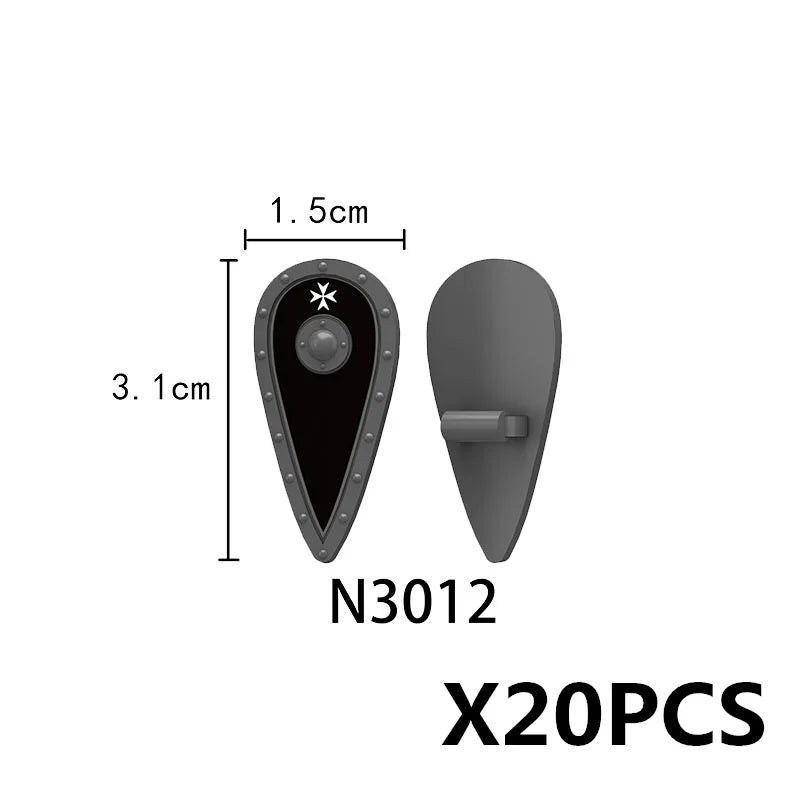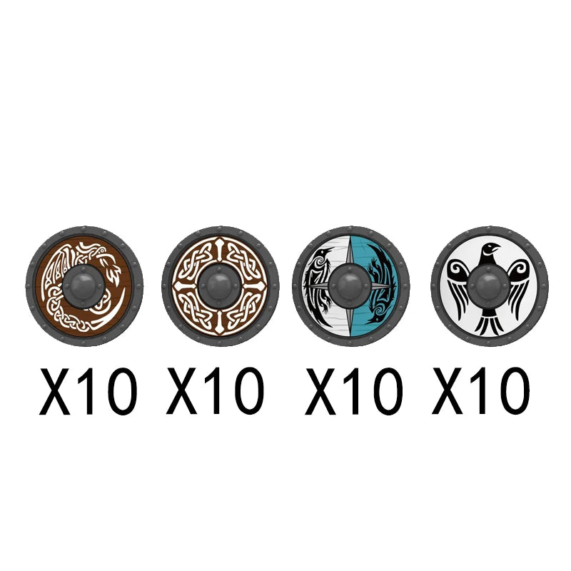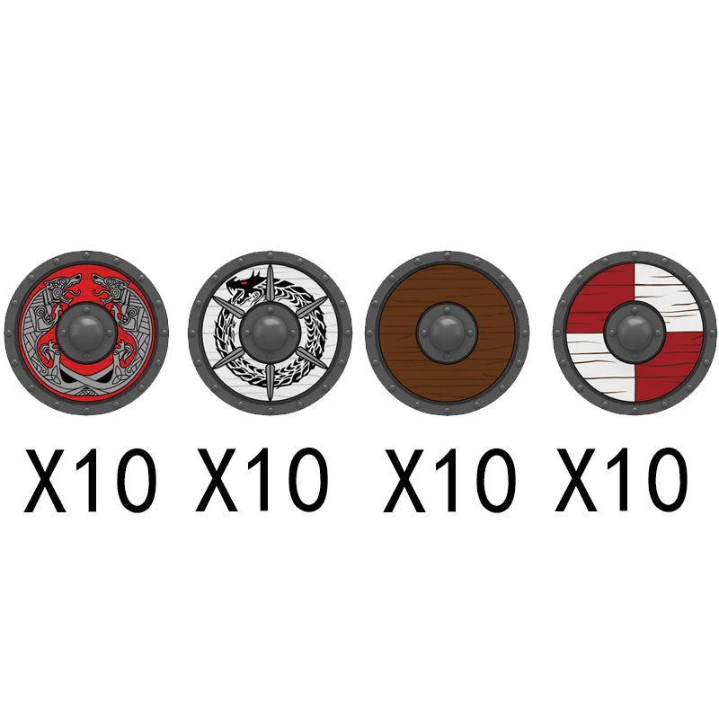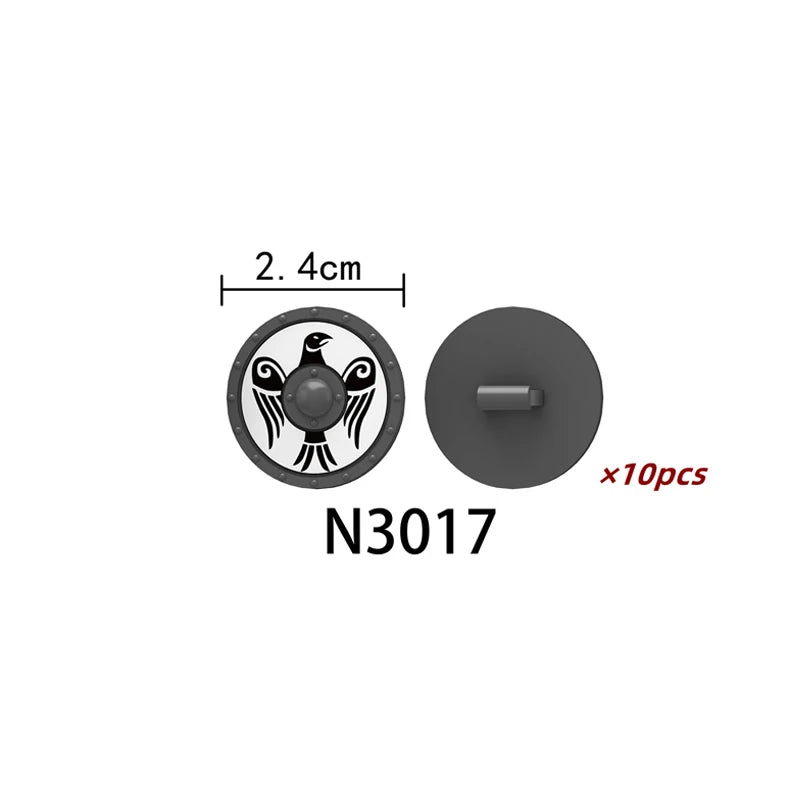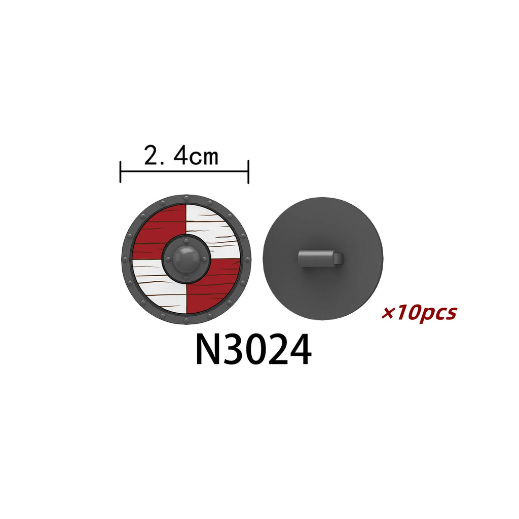 Medieval castle knight figure with Viking round shield, compatible DIY building blocks.
