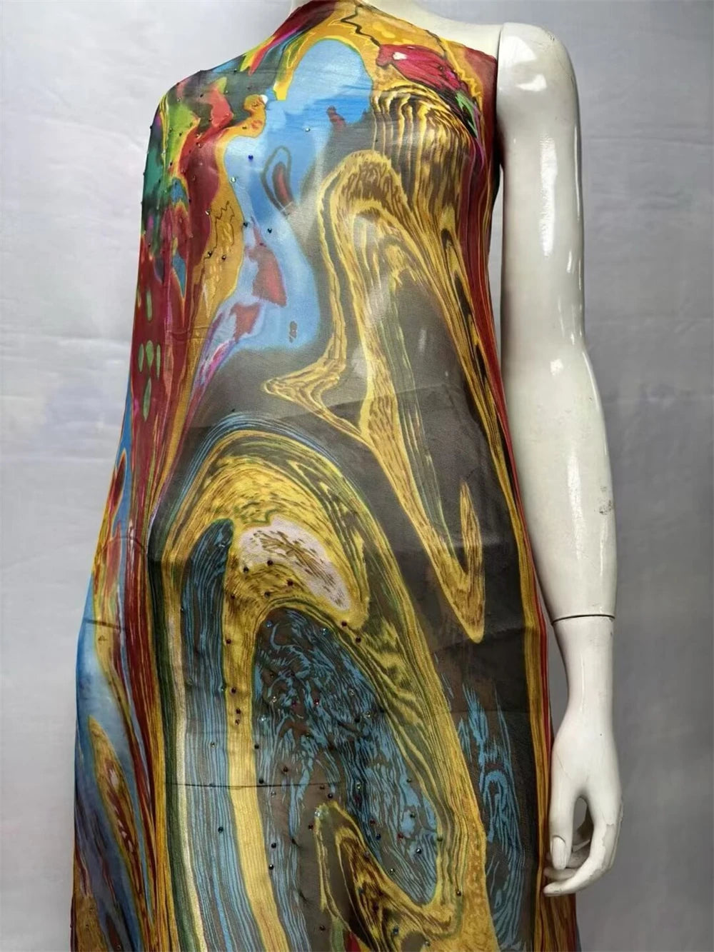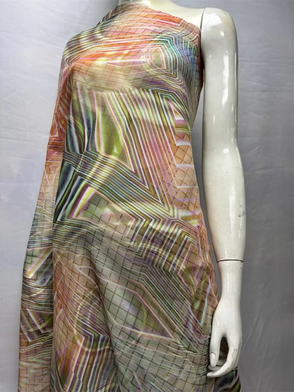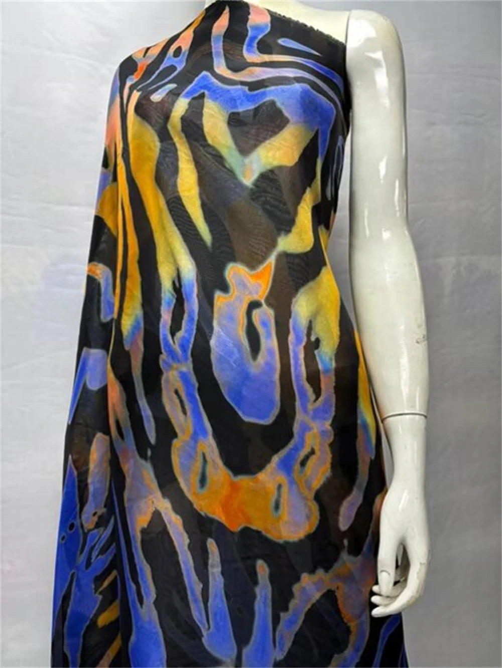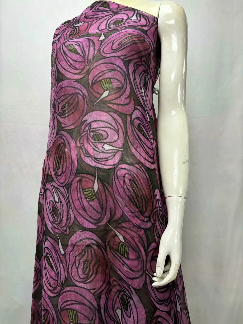 Silk Chiffon Fabric Soft Printed Tulle Lace For Sewing Dresses 3.5 Meters