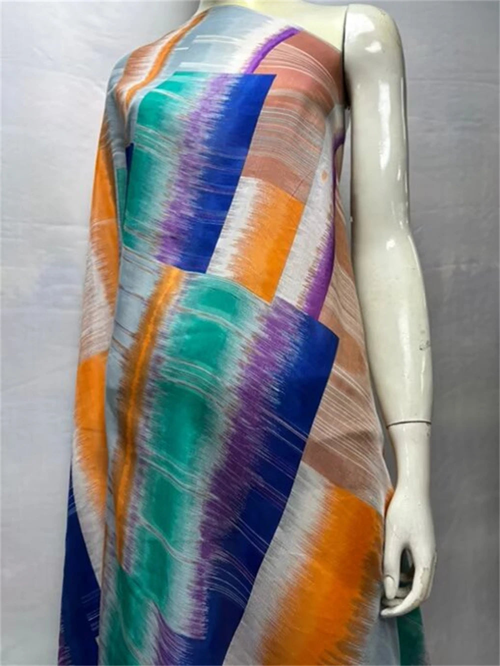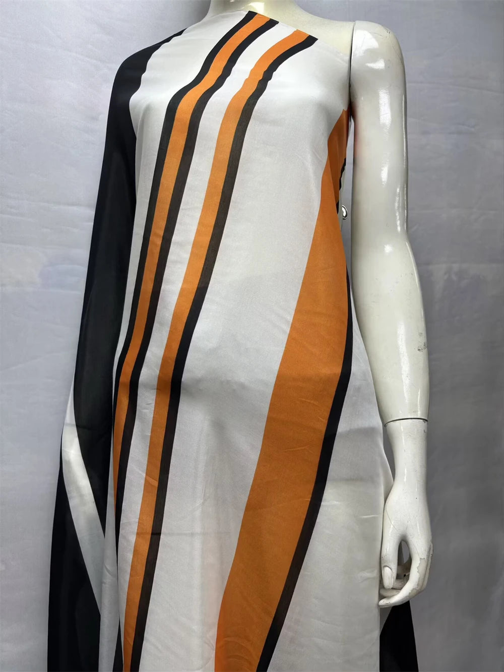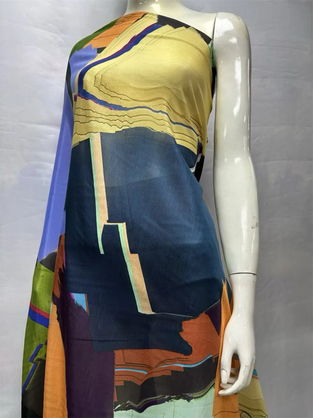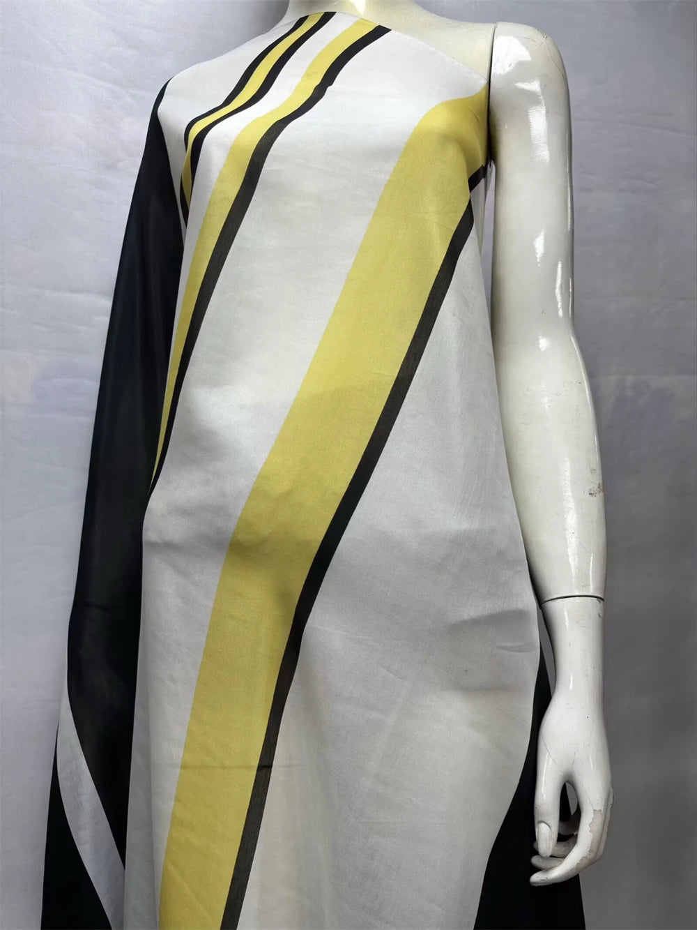 This fabric offers a lightweight, breathable feel with a soft texture and elegant drape, making it perfect for creating flowing, comfortable dresses that look sophisticated.